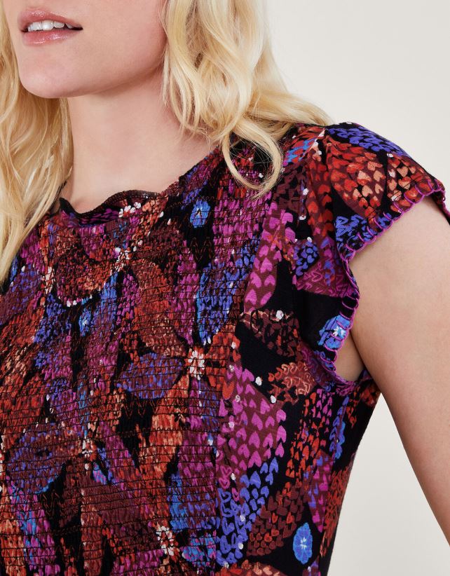 Monsoon محل - فستان زهري مكشكش في لينزينغ إيكوفيرو ملابس أسود Monsoon نحيف N4BV8X233