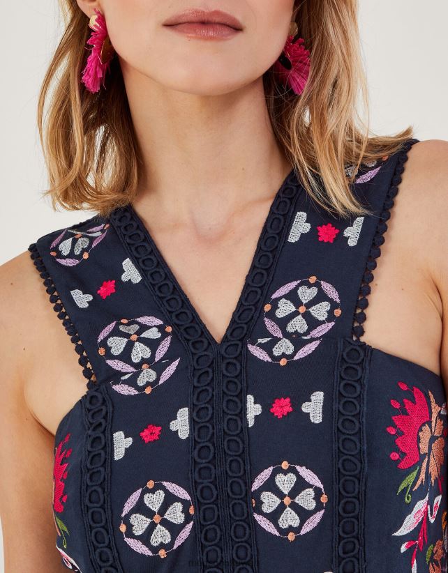 Monsoon Kuwait - فستان الشمس جيرسي المطرزة ملابس الأزرق الداكن) Monsoon نحيف N4BV8X730