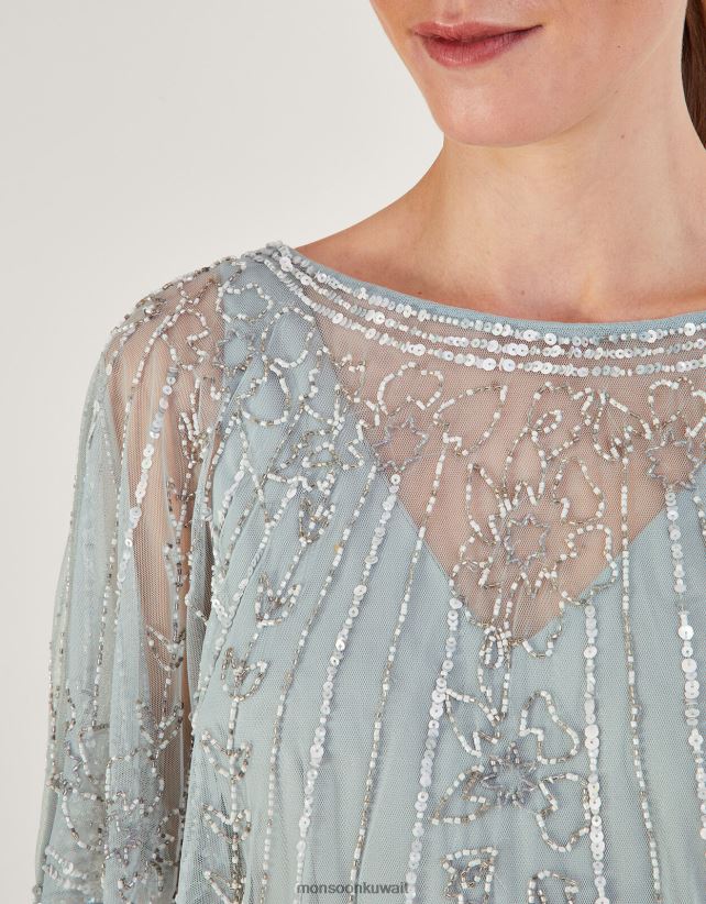 فستان إليزابيث طويل مزين بقصّة قصيرة من البوليستر المُعاد تدويره ملابس أخضر Monsoon نحيف N4BV8X738 - Monsoon online customer service