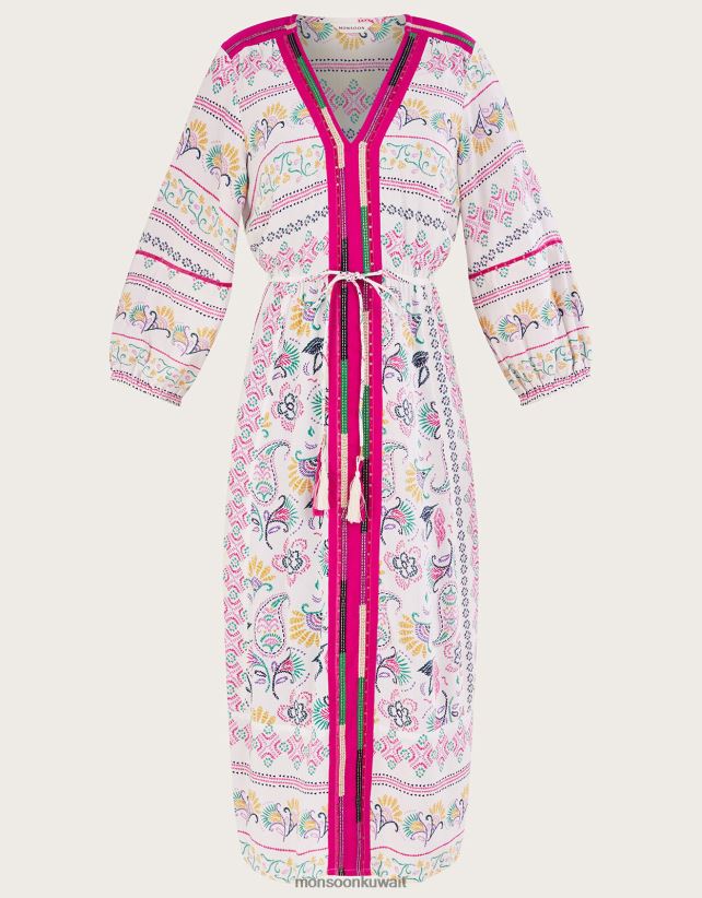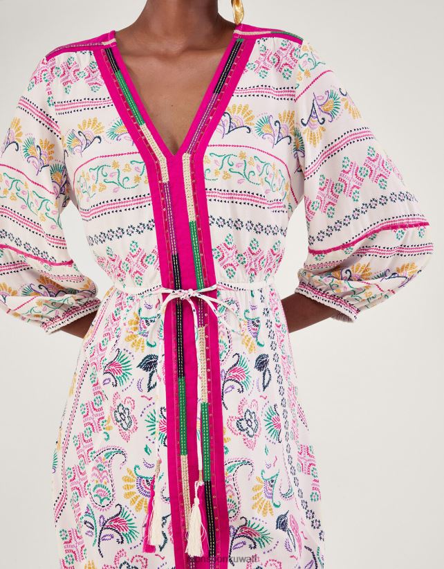 فستان بطبعة مطرزة من لينزينغ إيكوفيرو ملابس عاج Monsoon نحيف N4BV8X88 - Monsoon kuwait online shopping