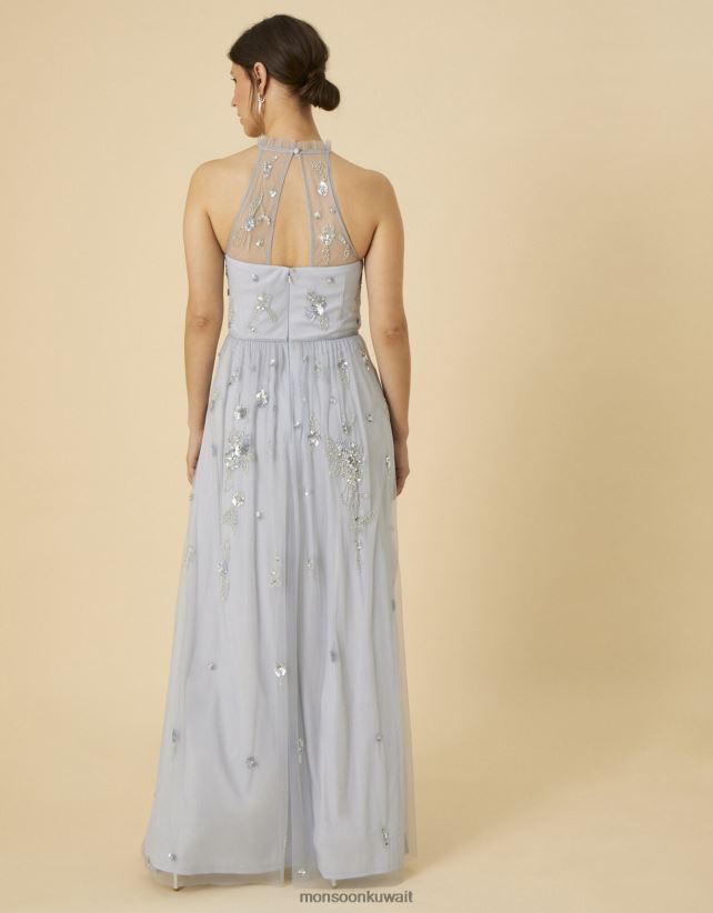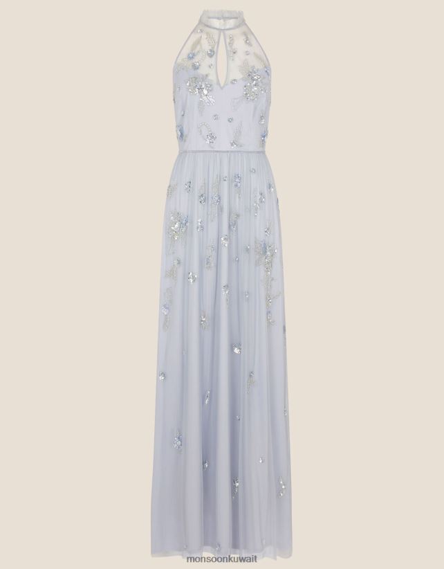 فستان ساشا طويل مزين بالبوليستر المعاد تدويره ملابس أزرق Monsoon نحيف N4BV8X948 - Monsoon kuwait avenues