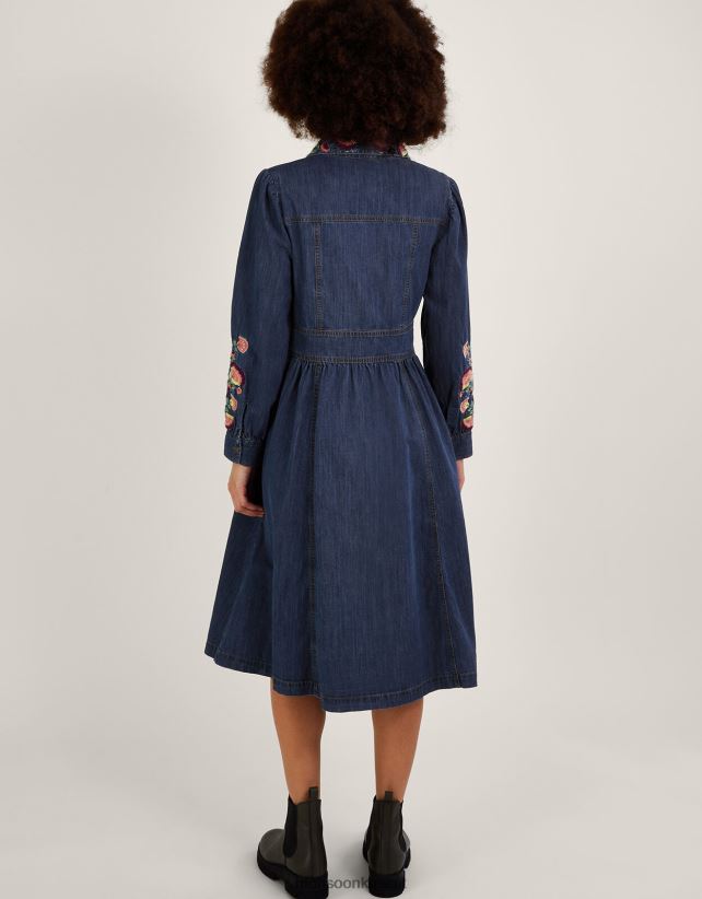 فستان قميص ميدي مطرز من الدنيم ملابس الأزرق (الدنيم الأزرق) Monsoon نحيف N4BV8X475 - Monsoon children