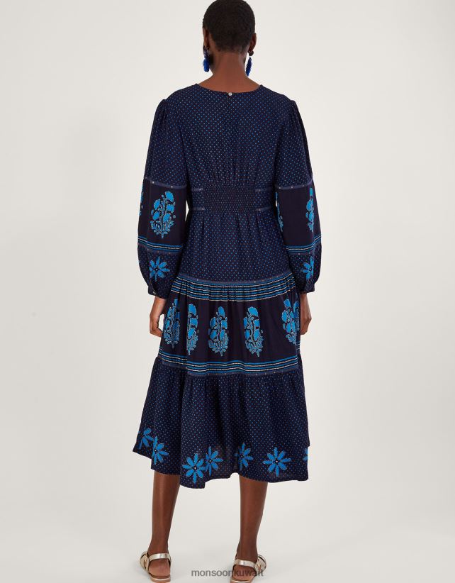 فستان ماكسي بطبعة بتلات البتلات ملابس أزرق Monsoon نحيف N4BV8X1017 - Monsoon children