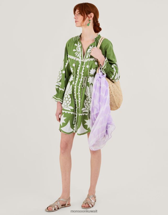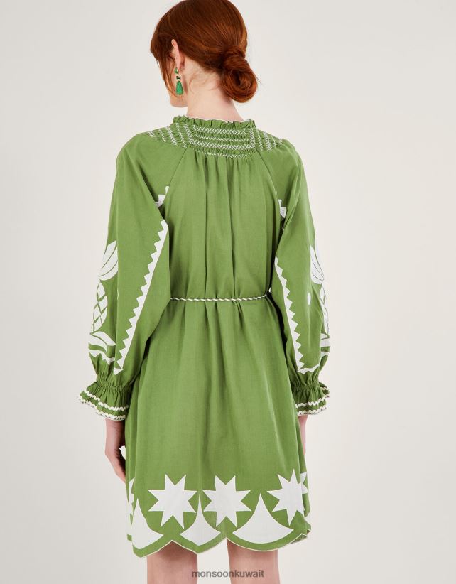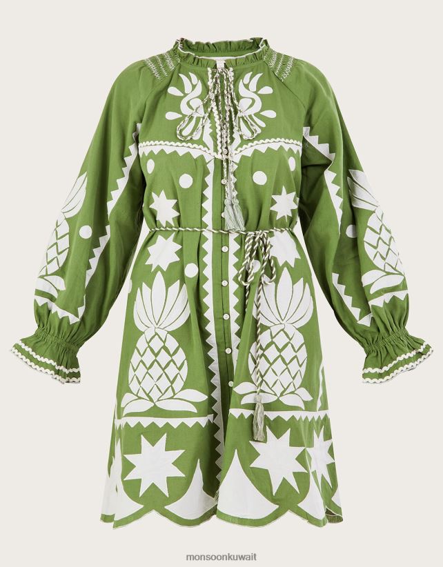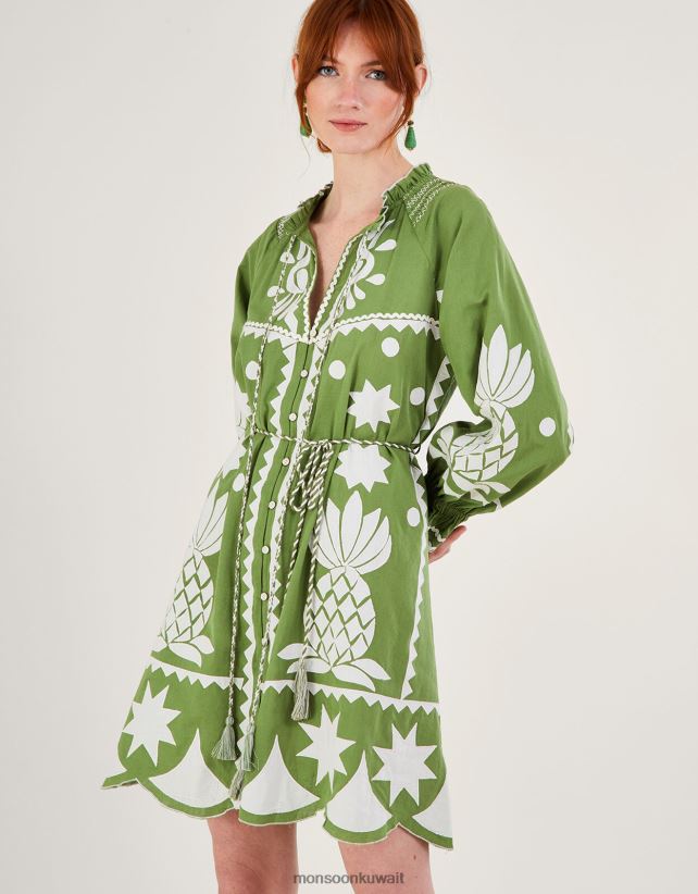فستان مطرز على شكل أناناس من مزيج الكتان ملابس أخضر Monsoon نحيف N4BV8X809 - Monsoon online customer service