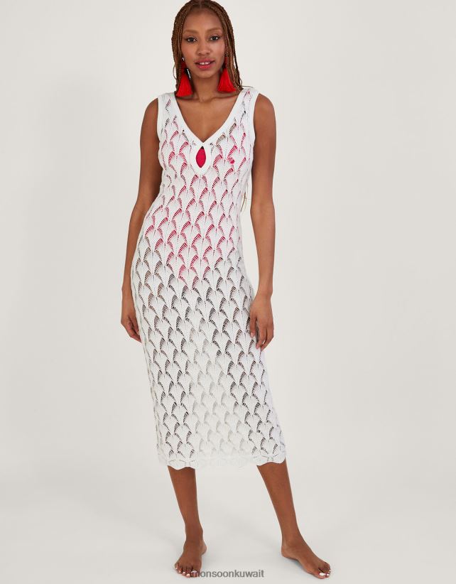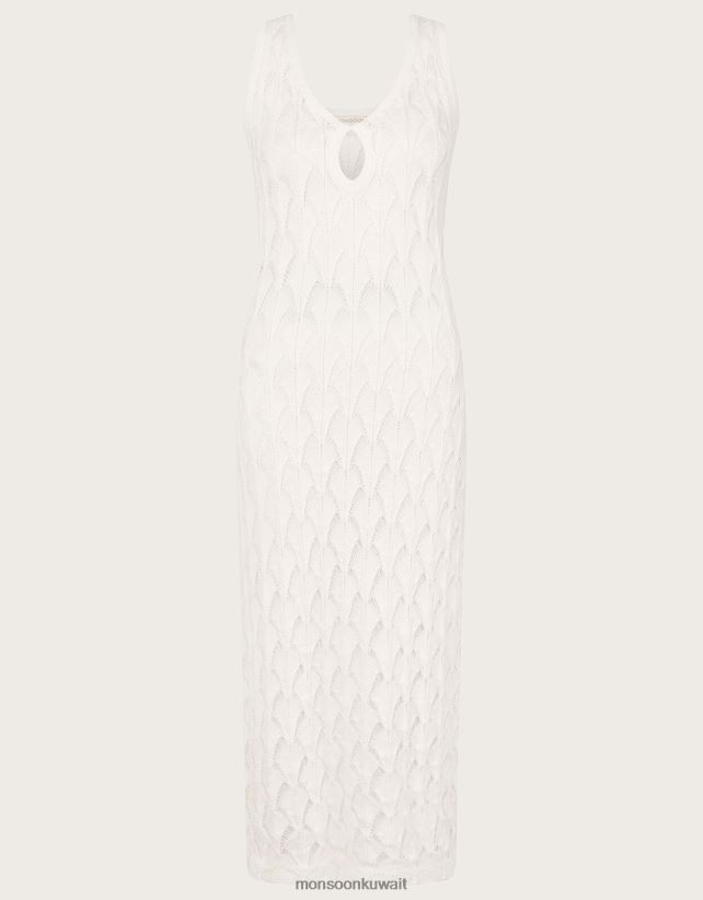 فستان ميدي للشاطئ بغرزة بوانتيلي ملابس عاج Monsoon نحيف N4BV8X339 - Monsoon kuwait avenues