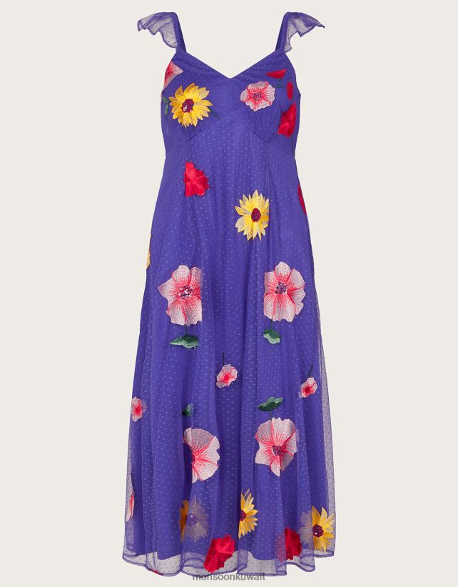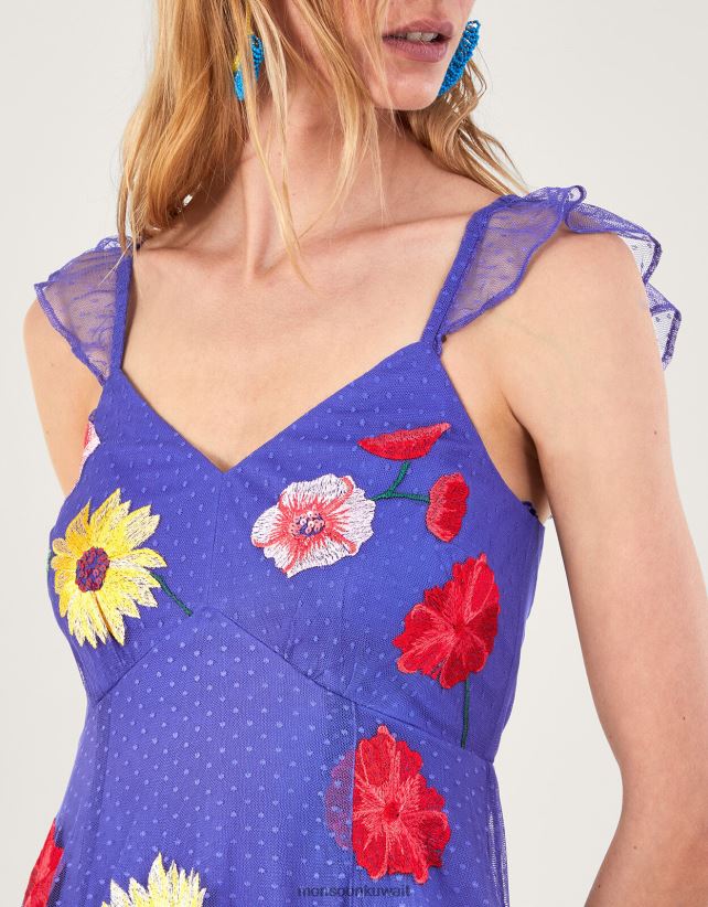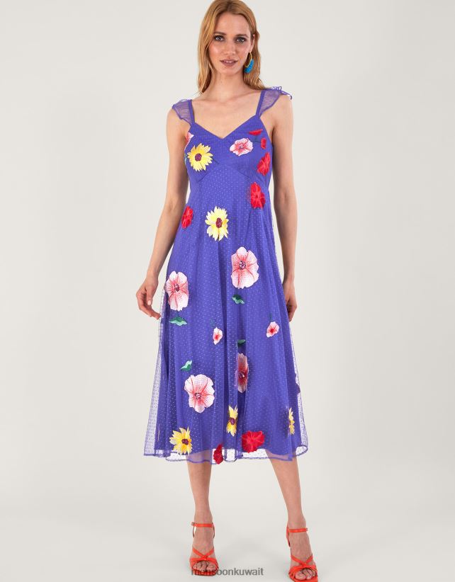 فستان ميكايلا ميدي مزين بالزهور ملابس أزرق Monsoon نحيف N4BV8X29 - Monsoon kuwait avenues