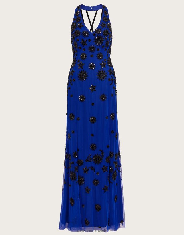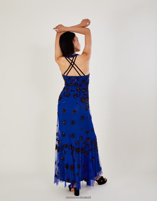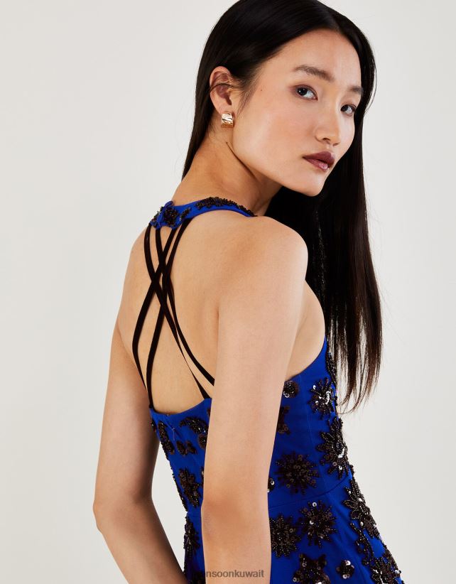 Monsoon محل - فستان روزا طويل مزين بالترتر من البوليستر المعاد تدويره ملابس الأزرق (الكوبالت) Monsoon نحيف N4BV8X322