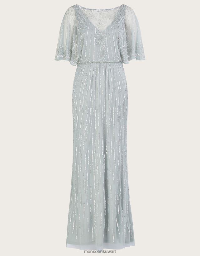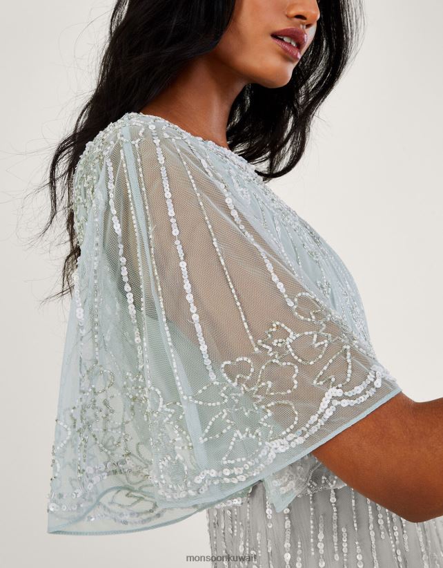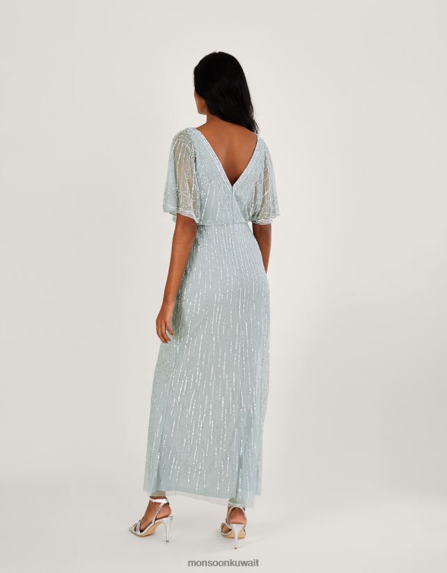 Monsoon معنى - فستان إليزابيث طويل مزين من البوليستر المعاد تدويره ملابس أخضر Monsoon نحيف N4BV8X787