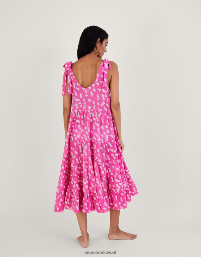 Monsoon معنى - فستان ميدي بطبقات وطبعات الباتيك ملابس لون القرنفل Monsoon نحيف N4BV8X1045