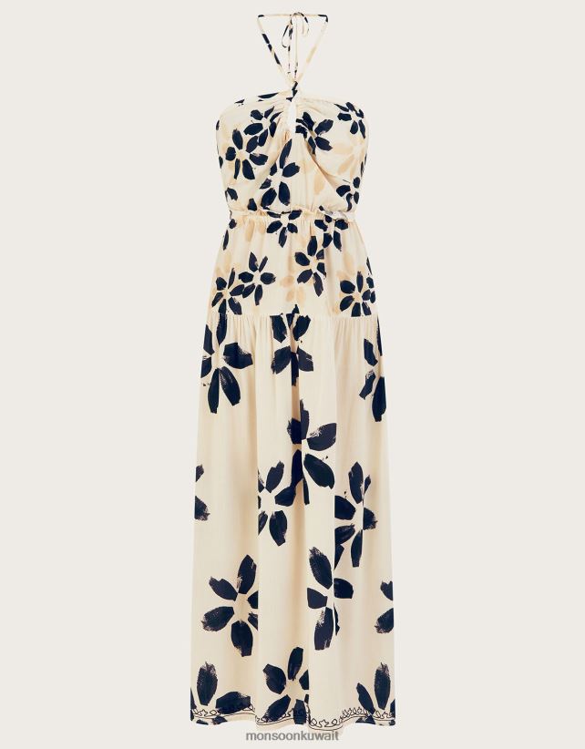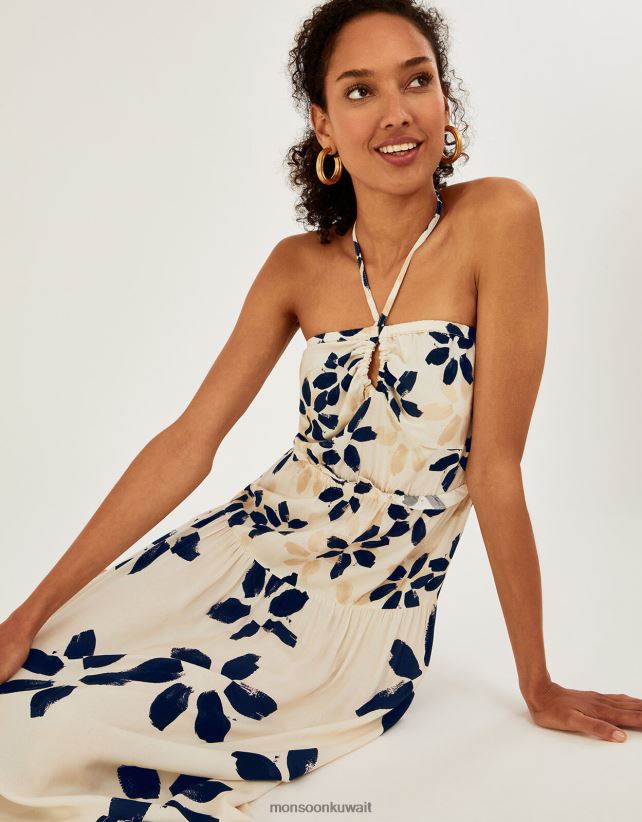 Monsoon accessorize - فستان برقبة رسن وطبعة زهور تجريدية ملابس عاج Monsoon نحيف N4BV8X1098
