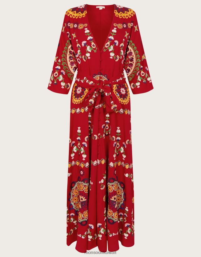 Monsoon accessorize - فستان جنيفر كيمونو مزين يدوياً ملابس أحمر Monsoon نحيف N4BV8X1063