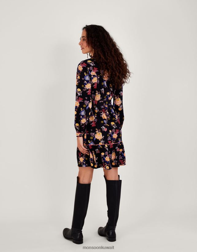 Monsoon accessorize - فستان جيرسيه بحزام وطبعات زهور ملابس أسود Monsoon نحيف N4BV8X709