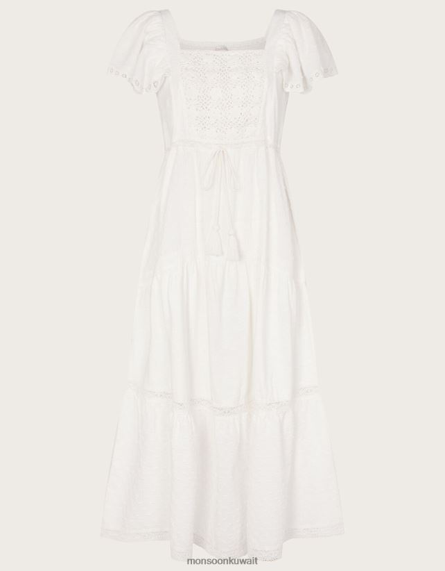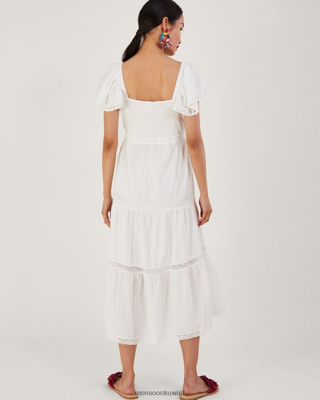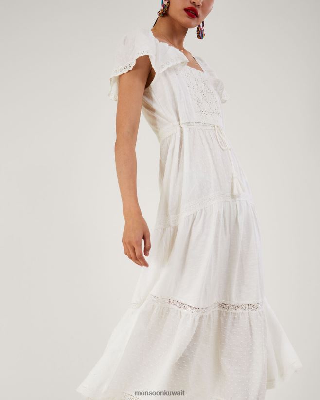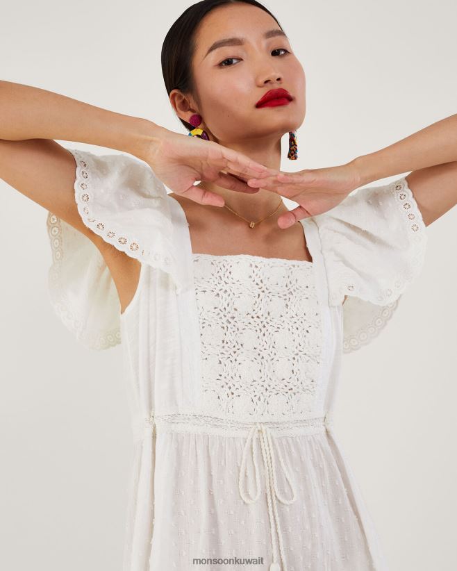 Monsoon UAE - فستان ميدي من القماش المختلط ملابس أبيض Monsoon نحيف N4BV8X979
