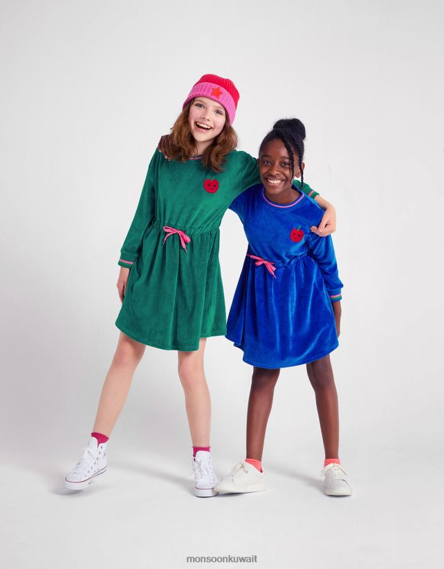 فستان مخملي برباط على الخصر ملابس أخضر Monsoon بنت N4BV8X1646 - Monsoon online customer service