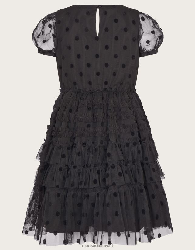 فستان من طبقة شبكية قطيع بقعة ملابس أسود Monsoon بنت N4BV8X1637 - Monsoon kuwait online shopping