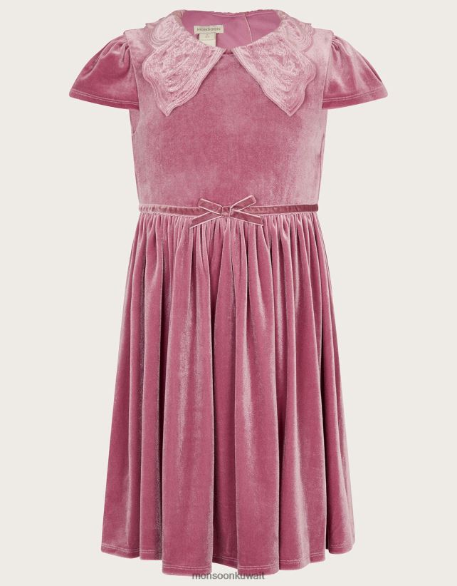 Monsoon محل - فستان مخملي بياقة فراشة ملابس الوردي (الوردي الداكن) Monsoon بنت N4BV8X1680