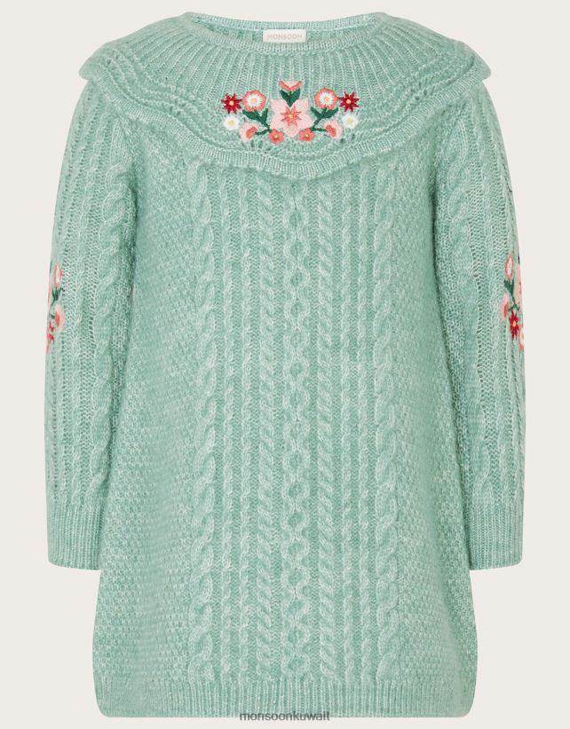 Monsoon معنى - فستان محبوك مطرز للطفل ملابس أخضر Monsoon بنت N4BV8X2131