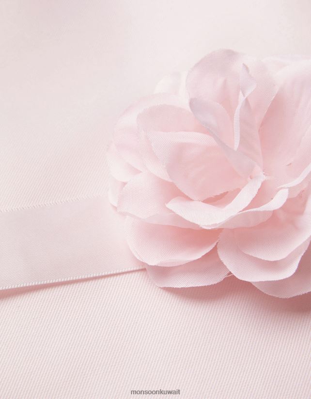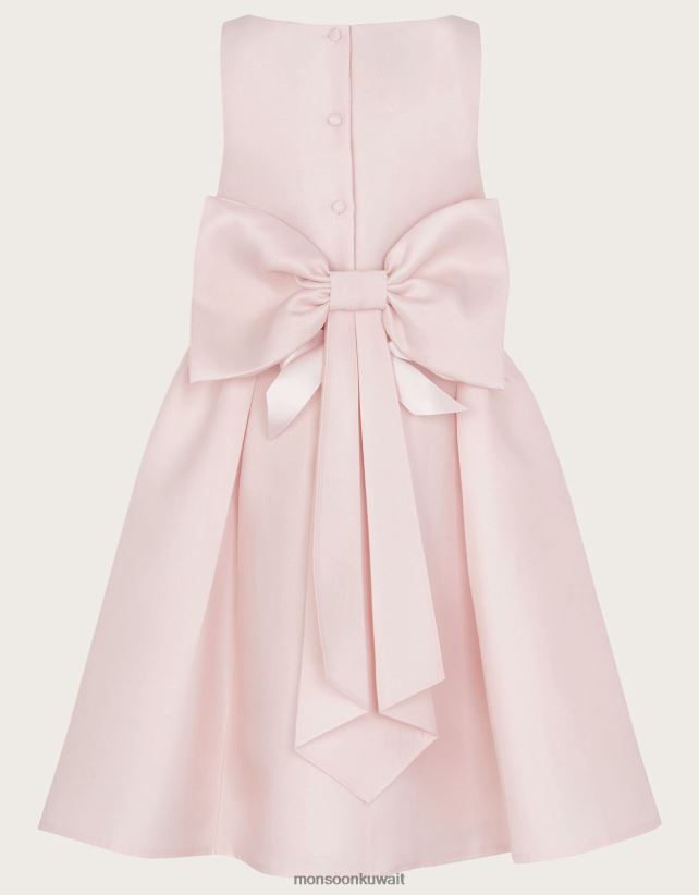 مثالي لارتداء الملابس بسهولة في حفلات الزفاف والتعميد، تم تصميم فستاننا الهولي من نسيج قطني مضلع مع حزام مزين بالزهور وفيونكة متتالية على الظهر. التنورة مطوية ومتسعة قليلاً على الجانبين، مع زر للتثبيت على الظهر باللون الوردي