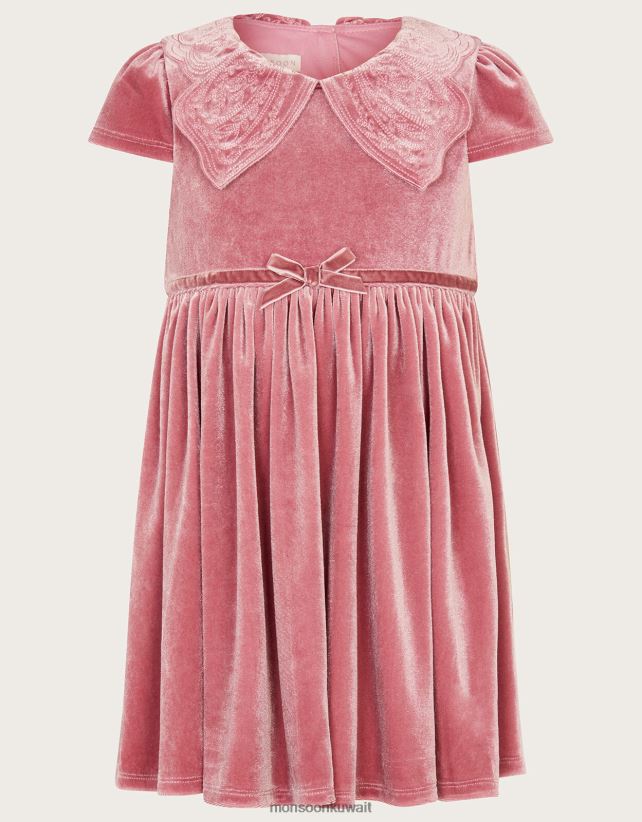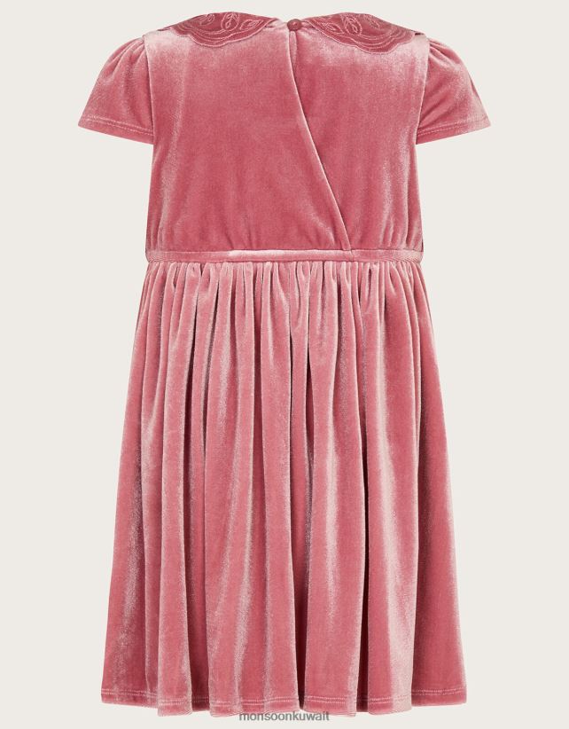 Monsoon UAE - فستان مخملي بياقة فراشة للأطفال ملابس الوردي (الوردي الداكن) Monsoon بنت N4BV8X2075