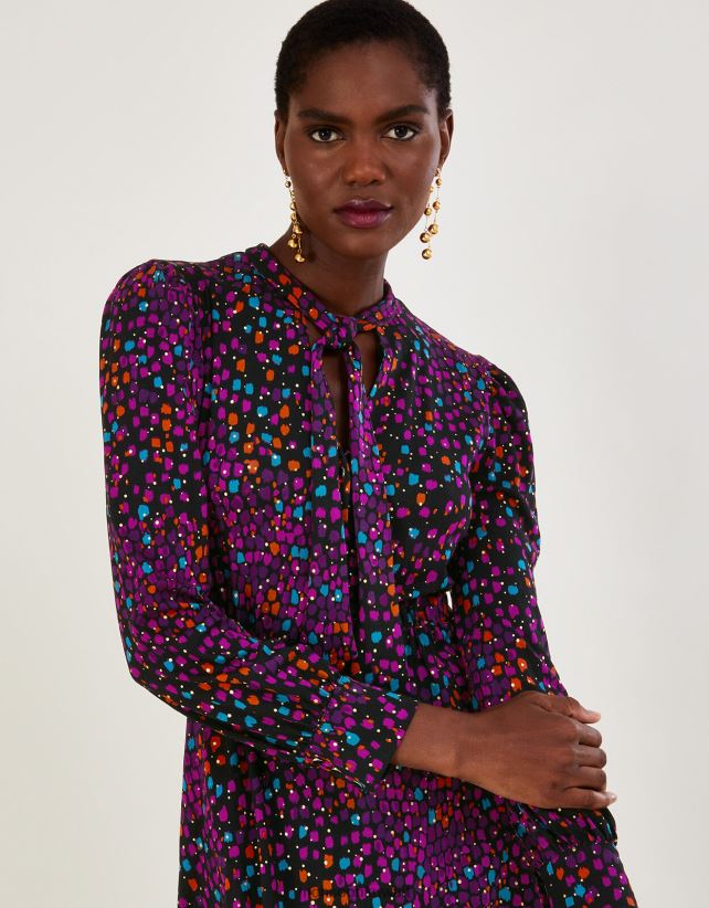 Monsoon معنى - فستان جيرسي بطبعة فويل على كامل التصميم ملابس أسود Monsoon نحيف N4BV8X651