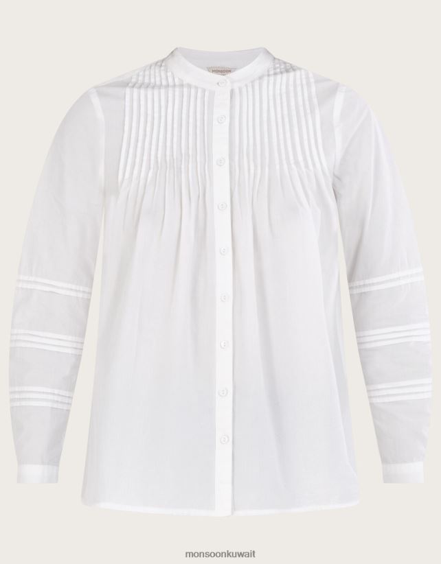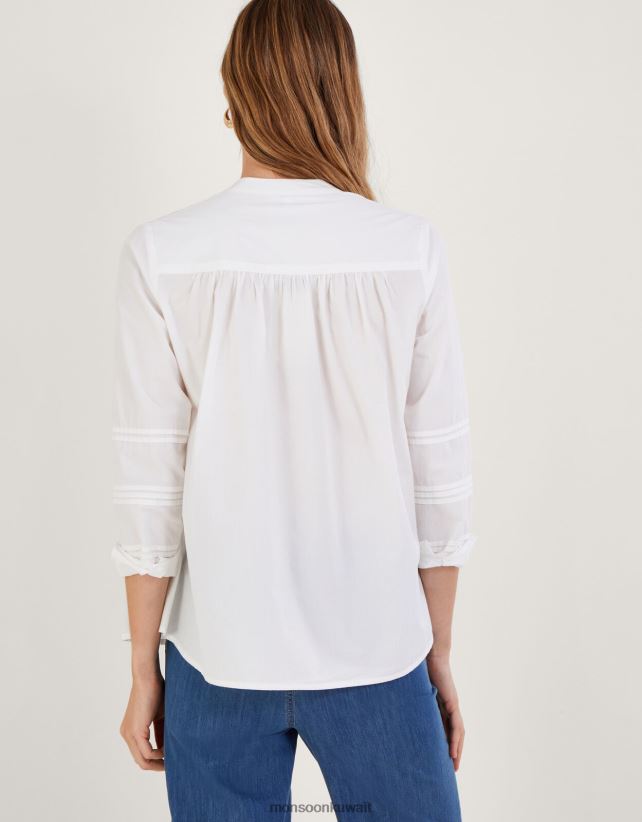 بلوزة طويلة بتفاصيل Pintuck ملابس أبيض Monsoon نحيف N4BV8X906 - Monsoon kuwait avenues