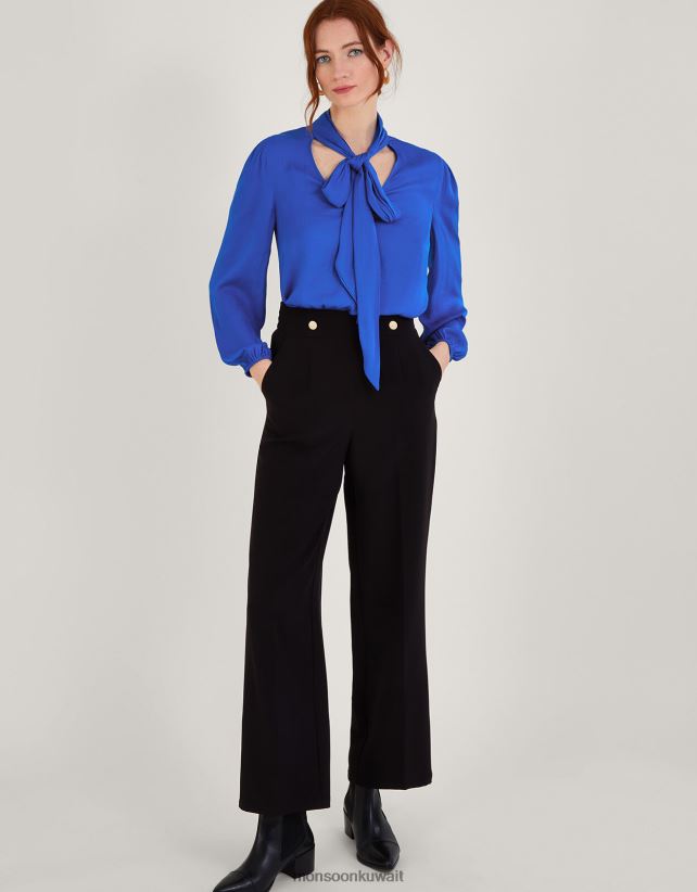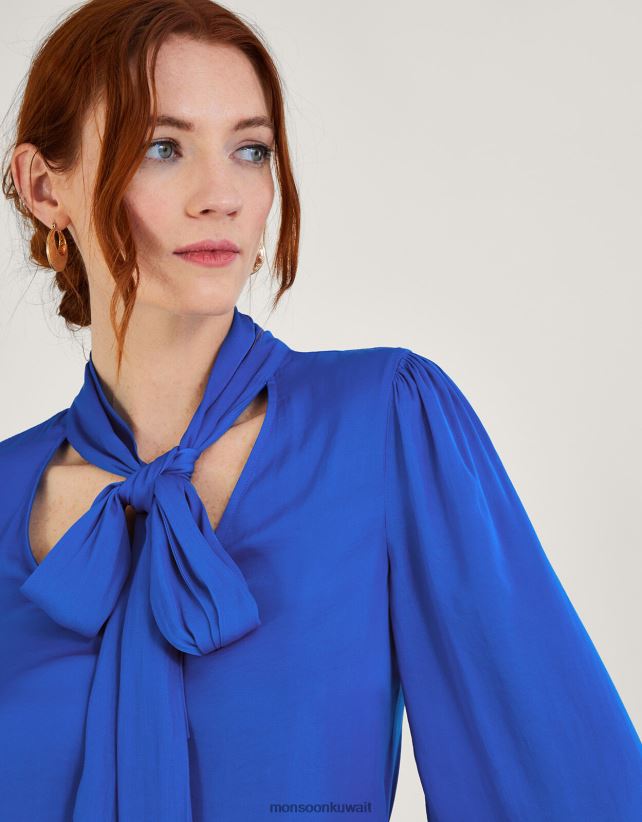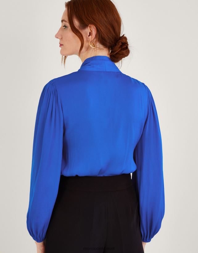 بلوزة كاتي من الساتان مع بوليستر معاد تدويره ملابس الأزرق (الكوبالت) Monsoon نحيف N4BV8X751 - Monsoon kuwait online shopping