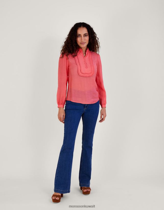 بلوزة ليز سادة بمريلة مزخرفة ملابس برتقالي (مرجاني) Monsoon نحيف N4BV8X593 - Monsoon online customer service