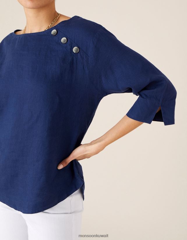 تي شيرت طويل من خشب الورد مصنوع من الكتان الخالص ملابس الأزرق الداكن) Monsoon نحيف N4BV8X592 - Monsoon kuwait avenues