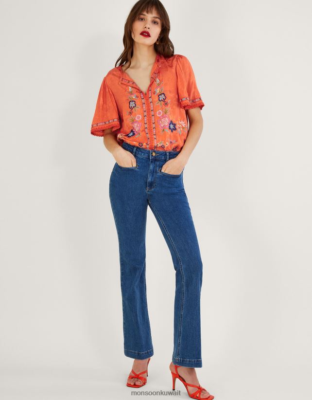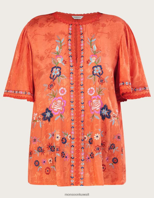 بلوزة أوديليا مطرزة بالزهور من الفيسكوز المستدام ملابس البرتقالي Monsoon نحيف N4BV8X262 - Monsoon kuwait online shopping
