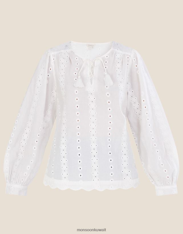 بلوزة بأكمام طويلة مطرزة من شيفلي ملابس أبيض Monsoon نحيف N4BV8X1112 - Monsoon children