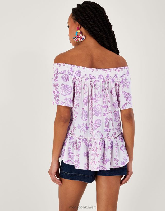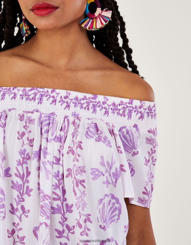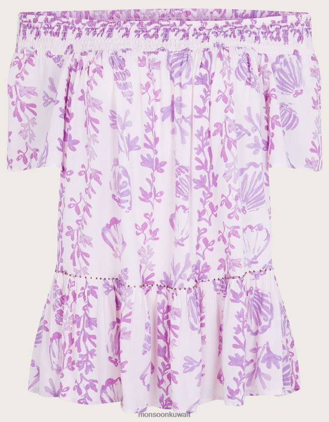 بلوزة بأكمام قصيرة وطبعة صدفة من Lenzing Ecovero ملابس لون القرنفل Monsoon نحيف N4BV8X277 - Monsoon kuwait avenues