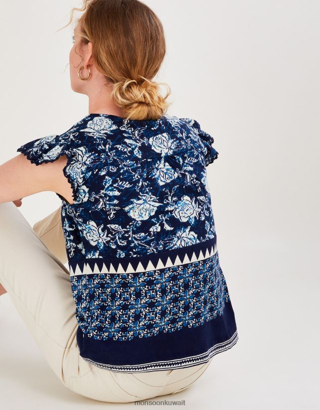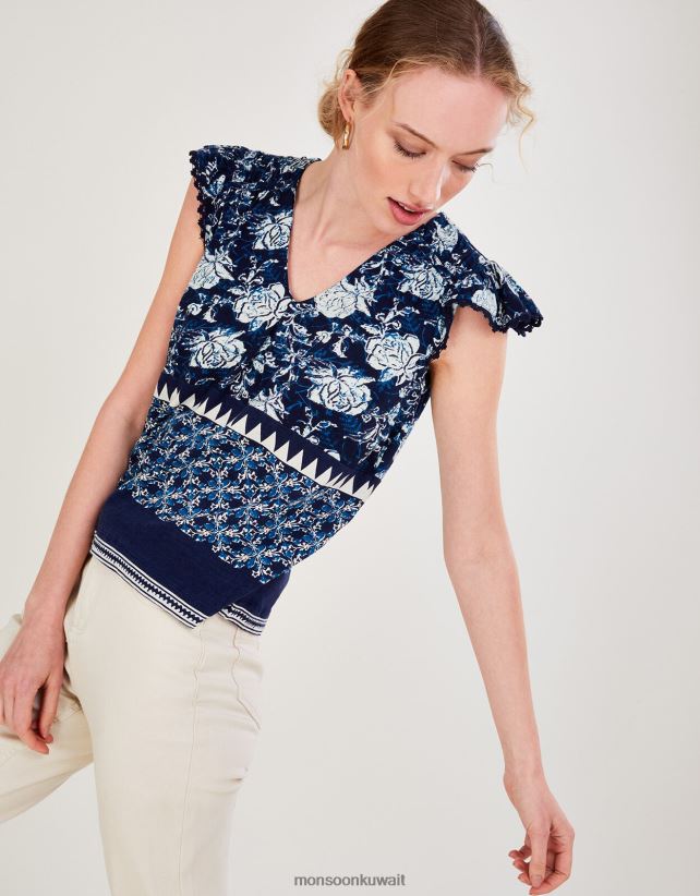 بلوزة جيرسيه بطبعة زهور، مصنوعة من القطن المستدام ملابس الأزرق الداكن) Monsoon نحيف N4BV8X2781 - Monsoon online customer service