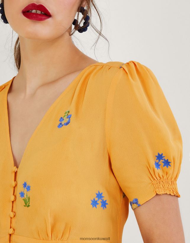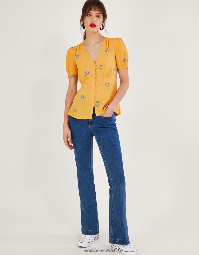 بلوزة شاي مطرزة من قماش الفيسكوز المستدام ملابس أصفر Monsoon نحيف N4BV8X814 - Monsoon kuwait avenues