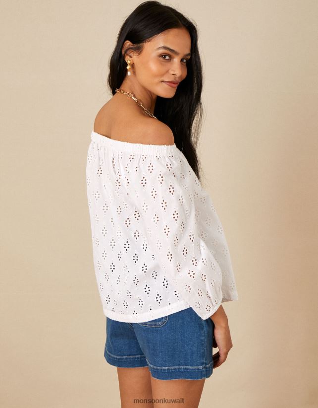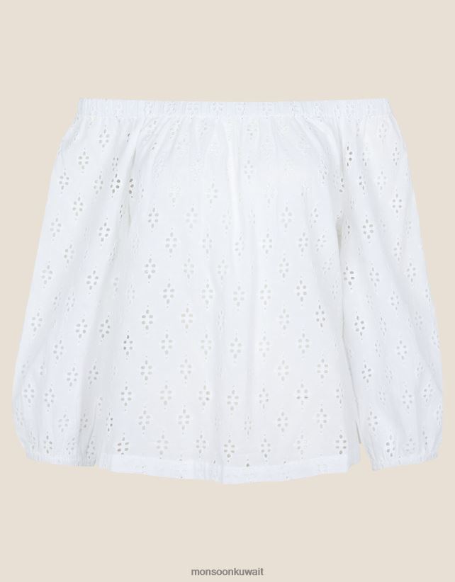 بلوزة شيفلي باردو من القطن المستدام ملابس أبيض Monsoon نحيف N4BV8X953 - Monsoon online customer service