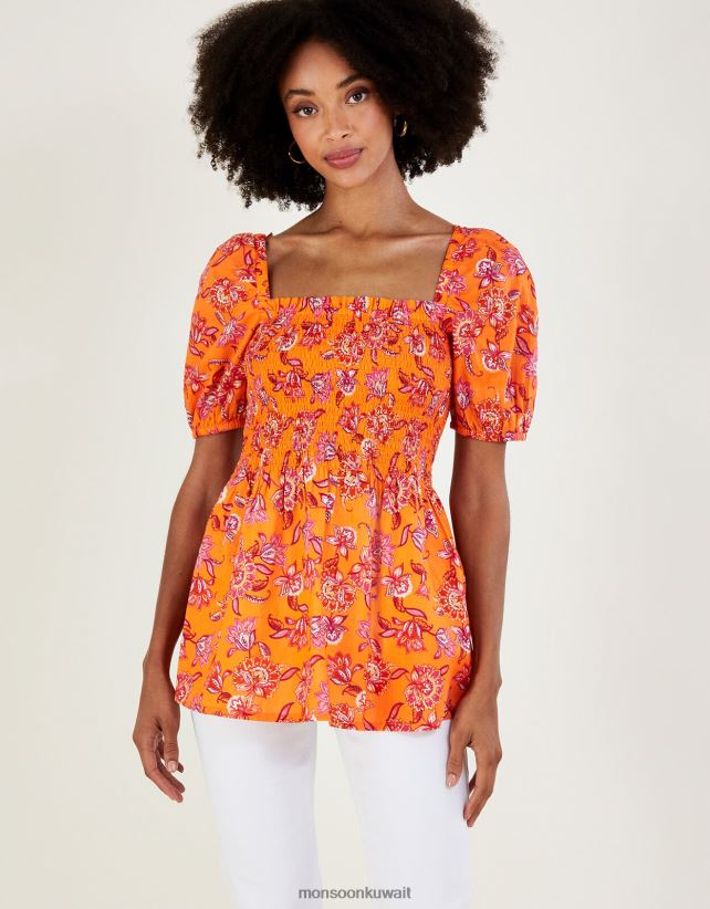 بلوزة صدرية بطبعات زهور من القطن المستدام ملابس البرتقالي Monsoon نحيف N4BV8X480 - Monsoon kuwait online shopping