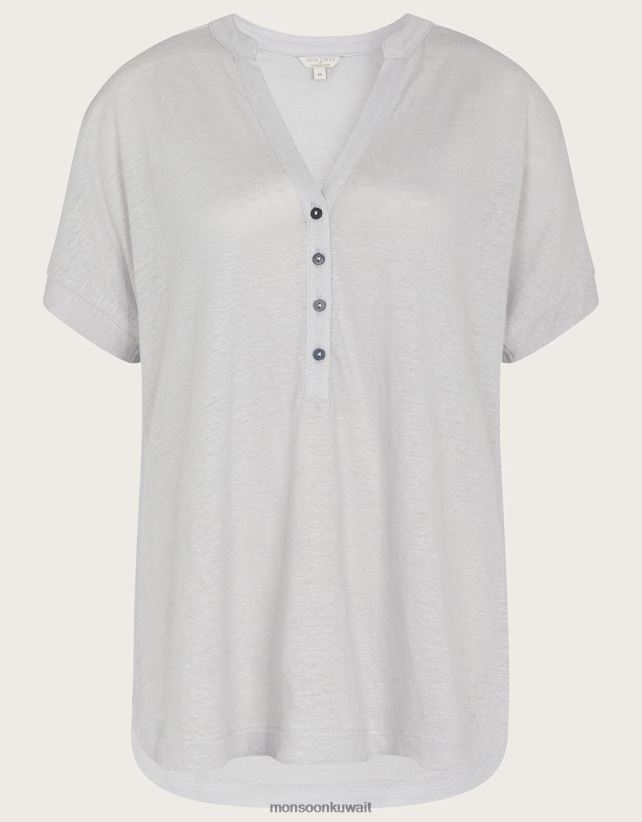 قميص جيرسي بأكمام قصيرة وتفاصيل أزرار ملابس رمادي Monsoon نحيف N4BV8X2794 - Monsoon online customer service