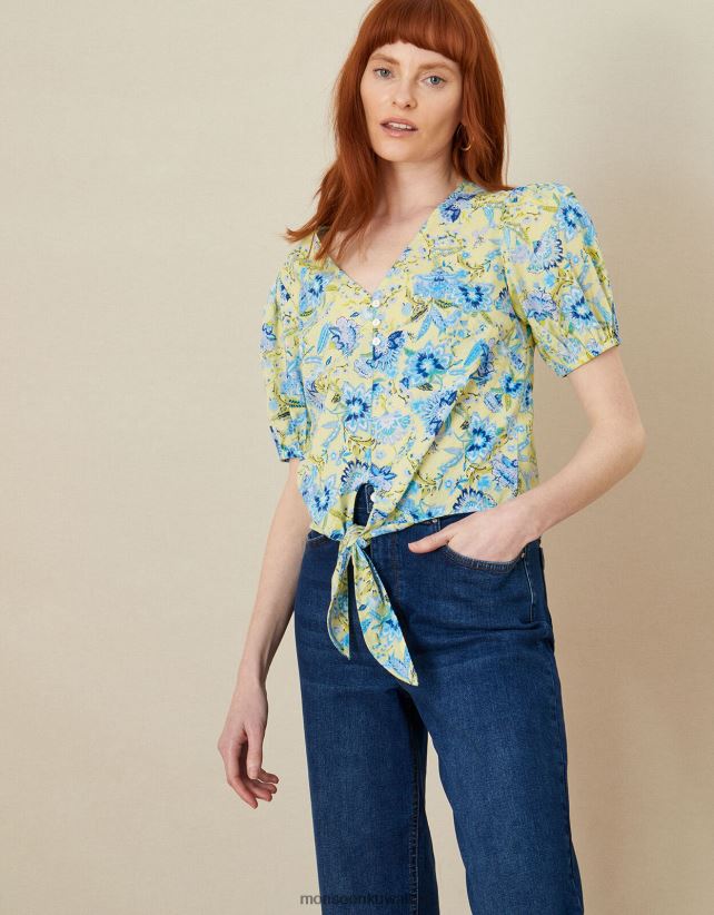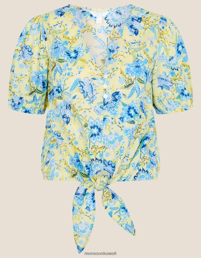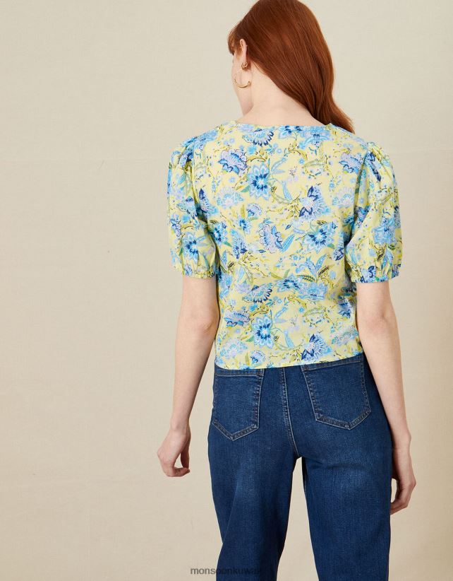 Monsoon محل - بلوزة بطبعة زهور من استوديو الحرفيين ملابس أزرق Monsoon نحيف N4BV8X794