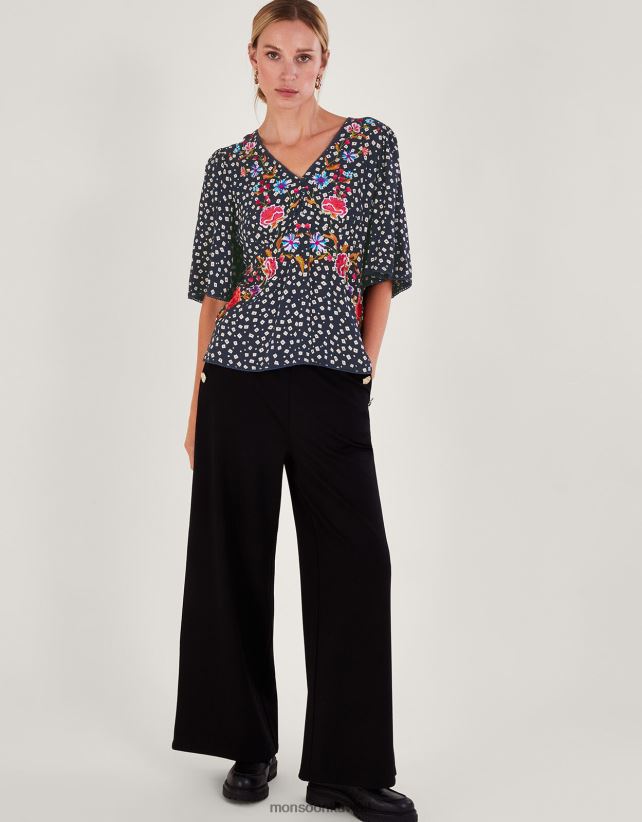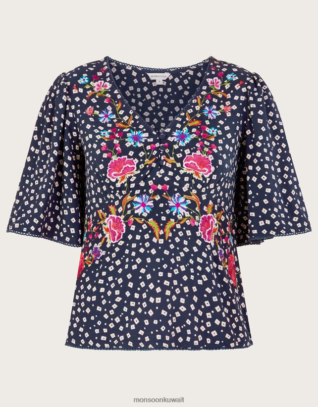 Monsoon محل - قمة الشاي المطرزة روري ملابس الأزرق الداكن) Monsoon نحيف N4BV8X171