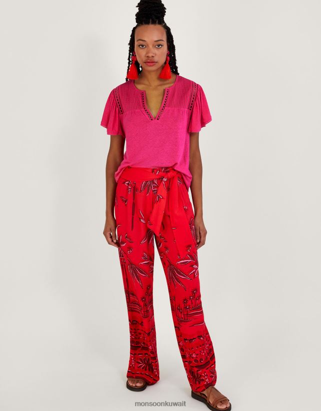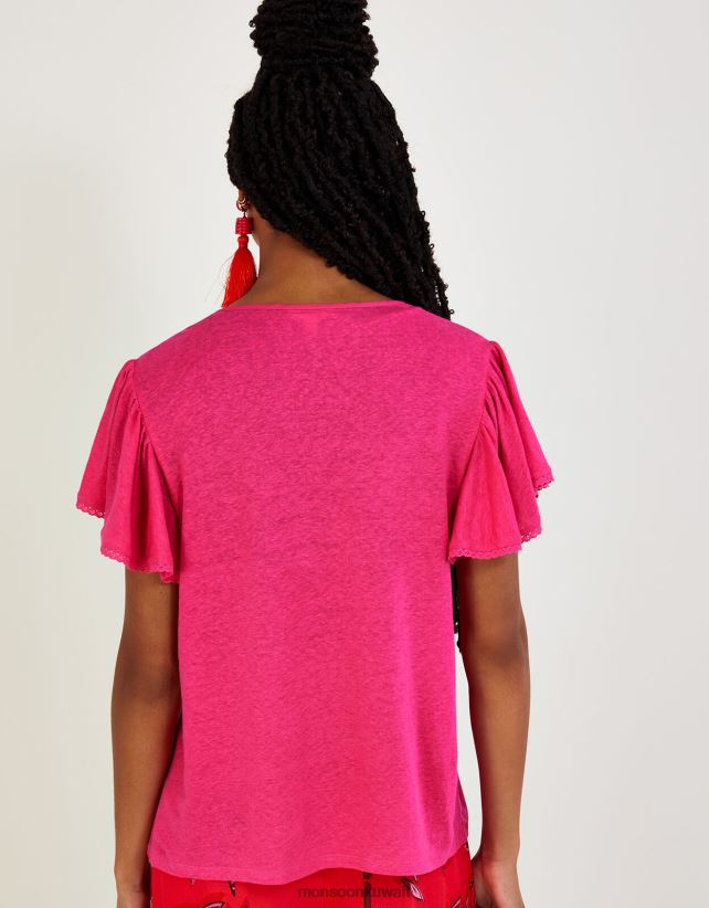 Monsoon معنى - بلوزة منسوجة برقبة على شكل حرف V من مزيج الكتان ملابس لون القرنفل Monsoon نحيف N4BV8X677