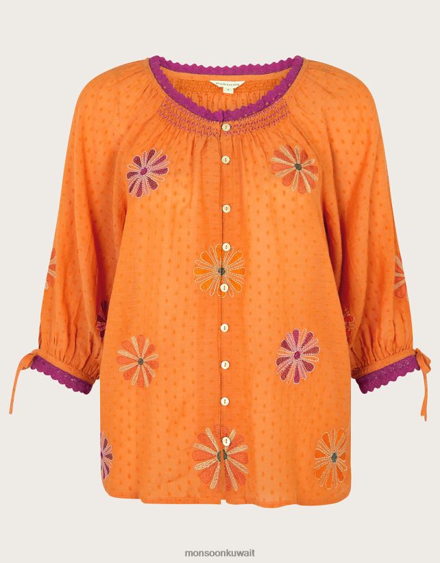 Monsoon معنى - زر علوي مطرز بالزهور ملابس البرتقالي Monsoon نحيف N4BV8X212