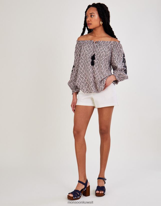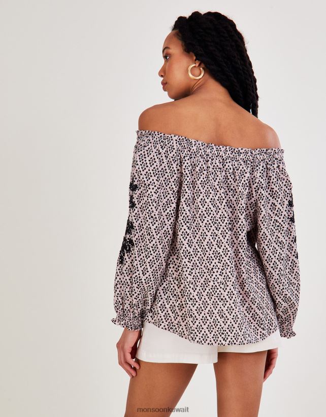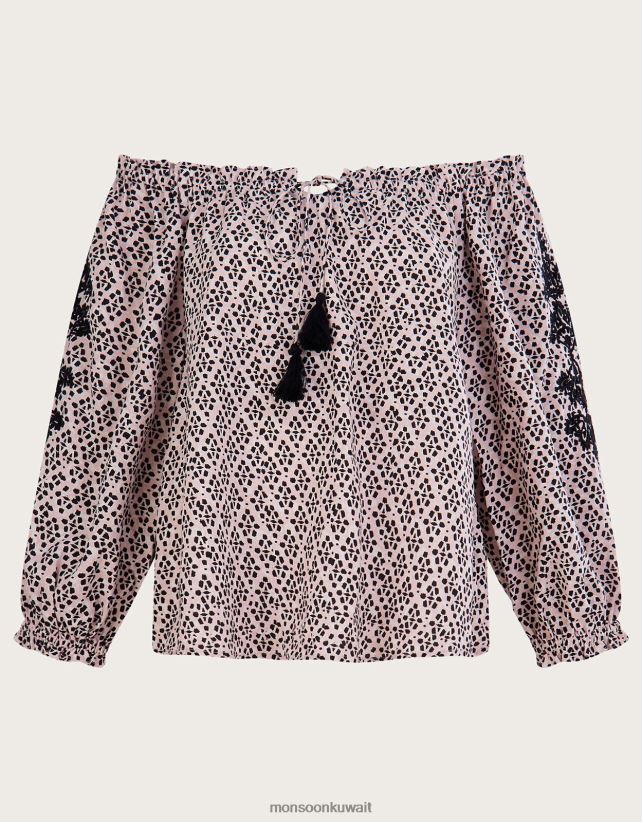 Monsoon accessorize - بلوزة باردو مطبوعة من لينزينغ إيكوفيرو ملابس أسود Monsoon نحيف N4BV8X2787