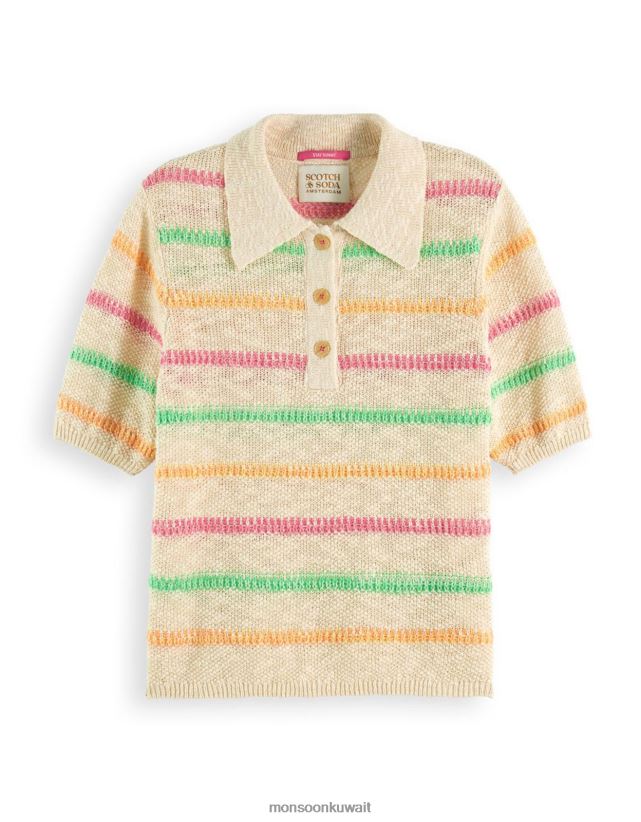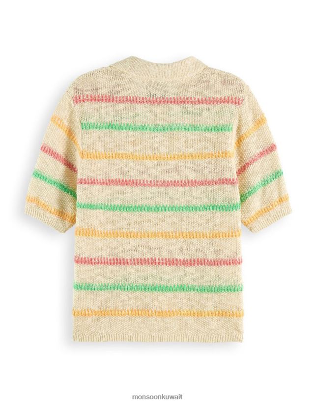 Monsoon accessorize - بلوفر بأكمام قصيرة وياقة مخططة من سكوتش وصودا ملابس طبيعي Monsoon نحيف N4BV8X792