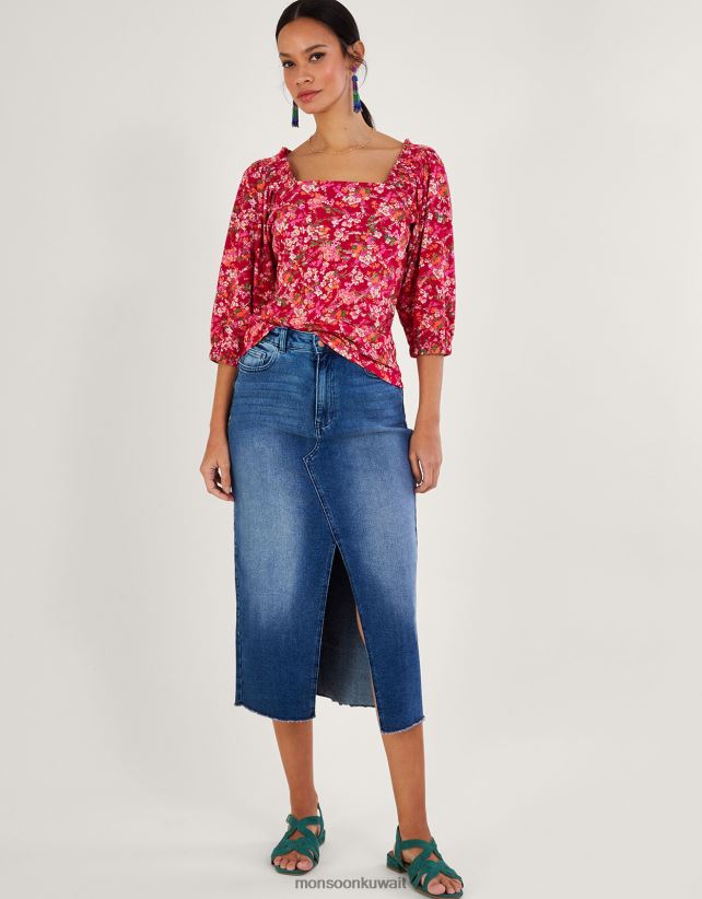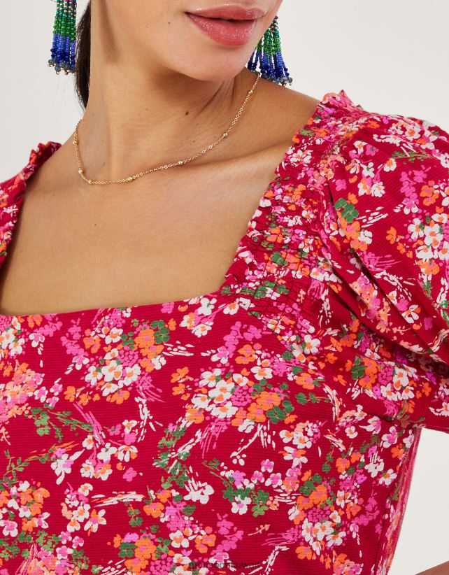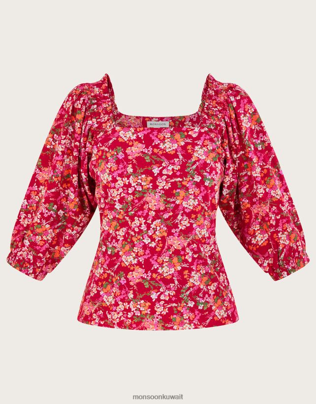 Monsoon Kuwait - بلوزة بطباعة زهور ديتسي من مزيج الكتان ملابس أحمر Monsoon نحيف N4BV8X528