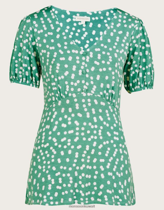 Monsoon Kuwait - بلوزة جيرسي بأكمام قصيرة منقط ملابس أخضر Monsoon نحيف N4BV8X2795
