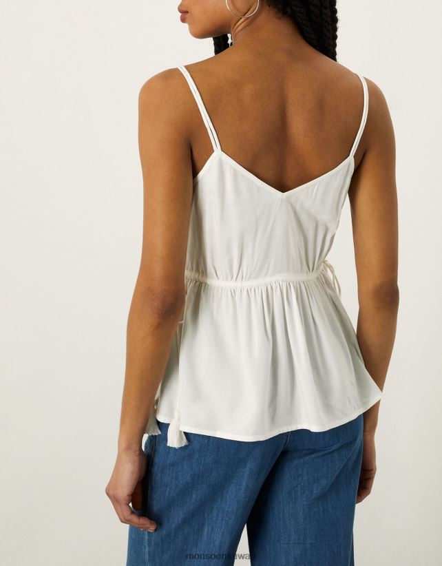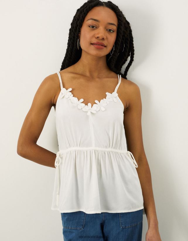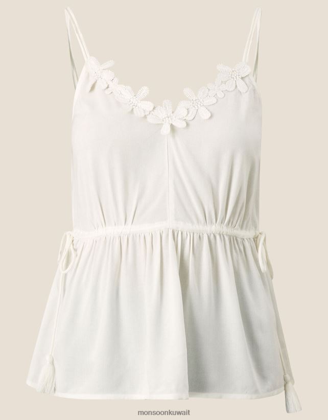 Monsoon Kuwait - بلوزة كامي مزينة بالزهور في لينزينج إيكوفيرو ملابس أبيض Monsoon نحيف N4BV8X2784
