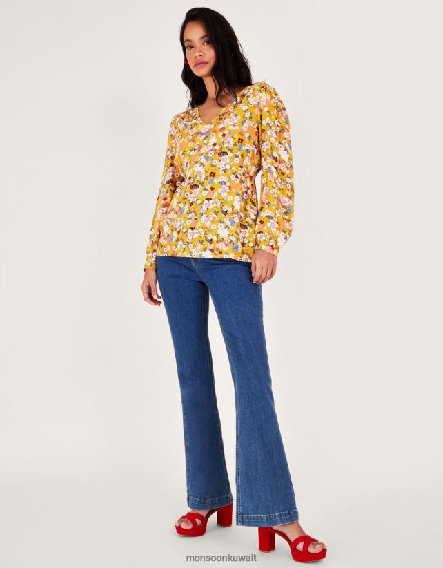 Monsoon Kuwait - قمة الأزهار ديتسي ملابس المغرة الصفراء) Monsoon نحيف N4BV8X139