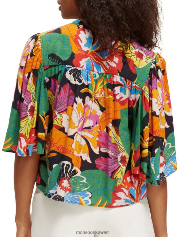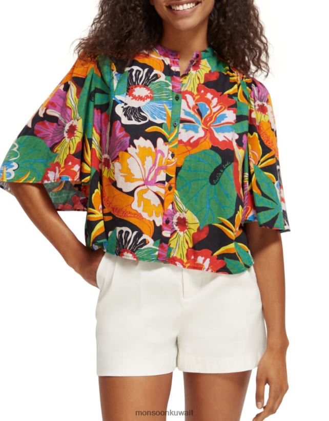 Monsoon Kuwait - قميص سكوتش وصودا بأكمام رفرفة ملابس متعدد Monsoon نحيف N4BV8X958