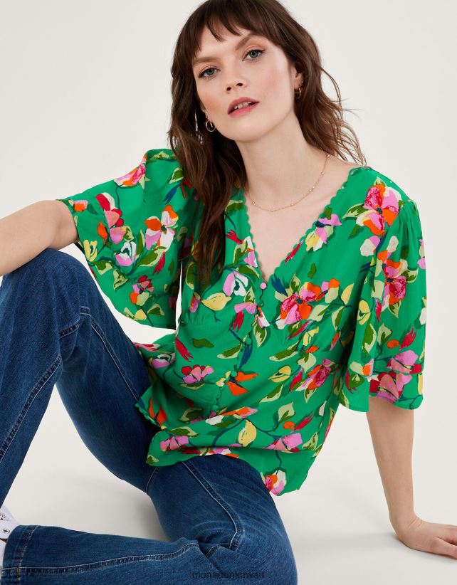 Monsoon UAE - قميص شاي Lilou مصنوع من الفيسكوز المستدام ملابس أخضر Monsoon نحيف N4BV8X970