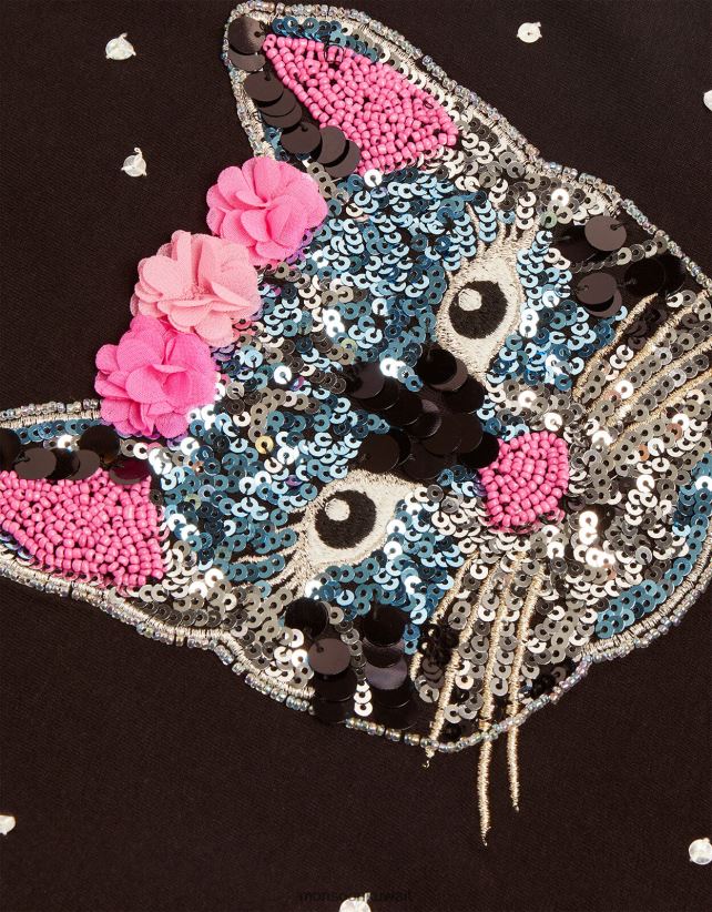 Monsoon محل - تي شيرت القط ملابس أسود Monsoon بنت N4BV8X1721