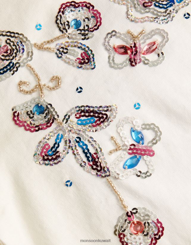 Monsoon Kuwait - قمة طويلة الأكمام بالترتر الزهري ملابس عاج Monsoon بنت N4BV8X1766